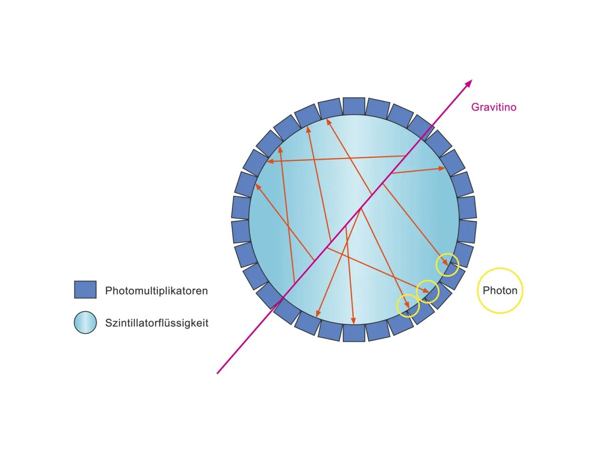 „Die von uns vorgeschlagene Beobachtungsmethode für superschwere Gravitinos basiert nicht – wie man eigentlich erwarten würde – auf Ionisation, sondern auf einer Art „Glühen”. Dieses stammt von Photonen, die während des Durchgangs solcher Teilchen durch die Nachweisflüssigkeit in großen Neutrino-Observatorien erzeugt werden sollten“, sagt Nicolai. „Dieses Glühen kann nach unseren Berechnungen einige Mikrosekunden bis zu einigen hundert Mikrosekunden andauern und würde eine charakteristische Spur durch den Detektor für die von uns postulierten superschweren Gravitinos erzeugen.“