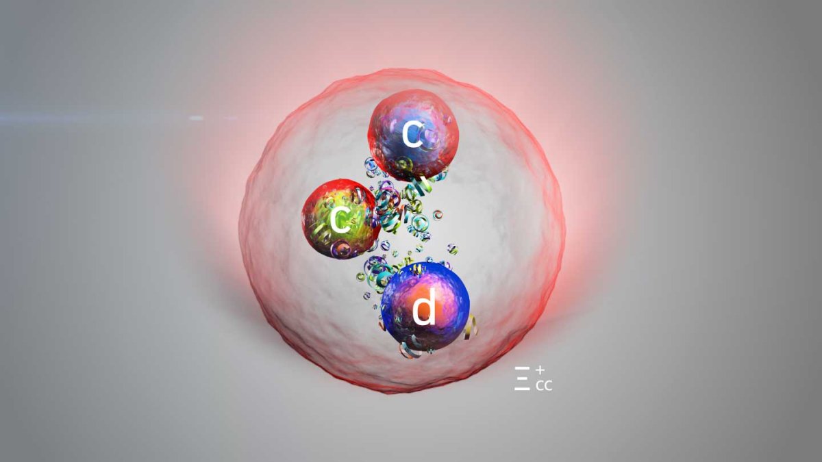 Das LHCb-Experiment am Large Hadron Collider (LHC) des CERN hat ein neues Teilchen entdeckt, das aus zwei Charm- und einem Down-Quark besteht, das Ξcc+. Es hat also Drei-Quark-Struktur wie das Proton, jedoch sind beiden Up-Quarks des Protons durch zwei schwere Charm-Quarks ersetzt, was die Masse in etwa vervierfacht. Die Entdeckung, die auf der Moriond-Konferenz vorgestellt wurde, kann das Verständnis erweitern, wie die starke Kernkraft Protonen, Neutronen und andere zusammengesetzte Teilchen miteinander bindet.