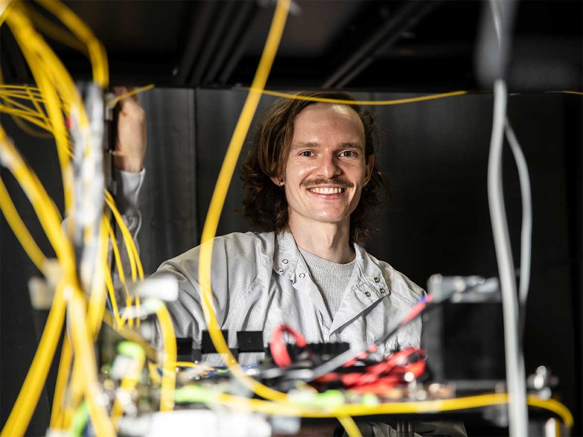 Für sein neuartiges Synchronisationsverfahren, das in Quantenkommunikationsnetzen Anwendung findet, erhielt Christopher Spiess den ersten Platz. Das von ihm entwickelte Verfahren kommt ohne zusätzliche Synchronisationslaser oder teure Atomuhren aus und eröffnet Anwendungsmöglichkeiten, die weit über die Quantenkommunikation hinausreichen.