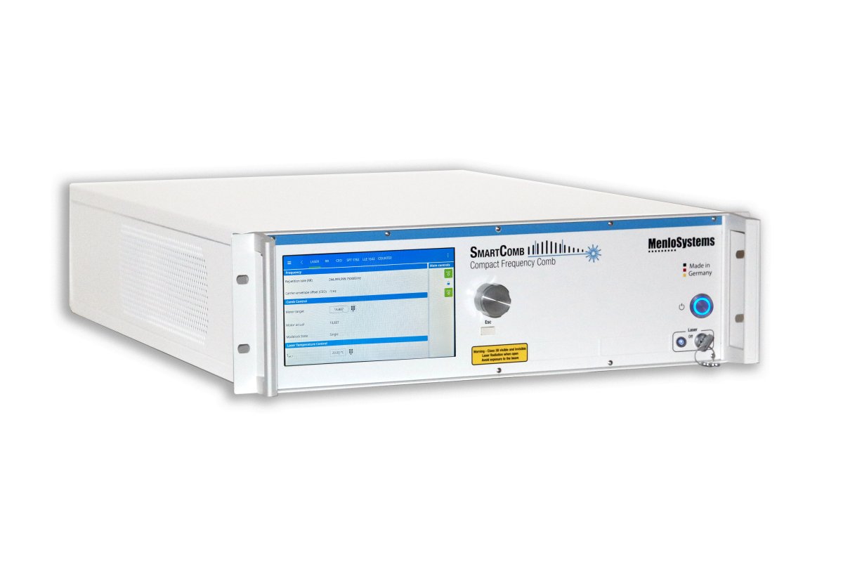 Merkmale: Der SmartComb-ULN ist ein kompaktes, robustes und vollautomatisches All-in-One Frequenzkamm-System für 24/7-Betrieb. Ausgestattet mit den von Menlo Systems patentierten figure-9®- und ULN-Technologien und einer Repetitionsrate von 250 MHz, liefert dieser Frequenzkamm Rekordstabilität und minimales Phasenrauschen – jetzt mit einem kompakten Formfaktor von nur 3 Höheneinheiten in einem 19-Zoll-Rack-Format. Zudem lässt sich der Smart-Comb-ULN mit allen bewährten Erweiterungen des FC1500-ULNnova kombinieren, wodurch das Kammlicht einen Spektralbereich von 500 bis 2100 nm erreicht. Der SmartComb-ULN ermöglicht den einzigartigen Transfer spektraler Reinheit mit sub-Hz-Linienbreite bei allen Wellenlängen. Mit seiner hohen Repetitionsrate und der durchstimmbaren Offsetfrequenz bietet der SmartComb-ULN die Flexibilität, die Positionen einzelner Kammlinien nach Belieben einzustellen.